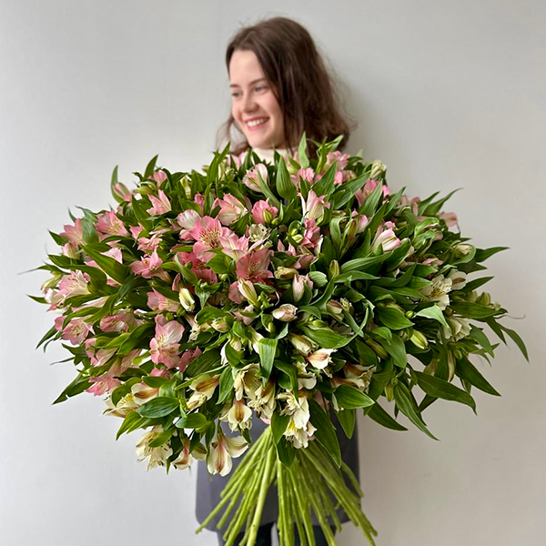 На фото представлен букет из 51 альстромерий