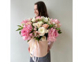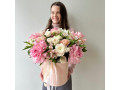 Роскошная композиция в шляпной коробке с пионовидной розой и ранункулюсами № 122 от 7850