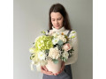 Нежная композиция в шляпной коробке с зеленой гортензией № 125 от 3500