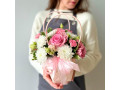 Нежно-розовая композиция в сумочке с розами и хризантемой № 8 от 2360